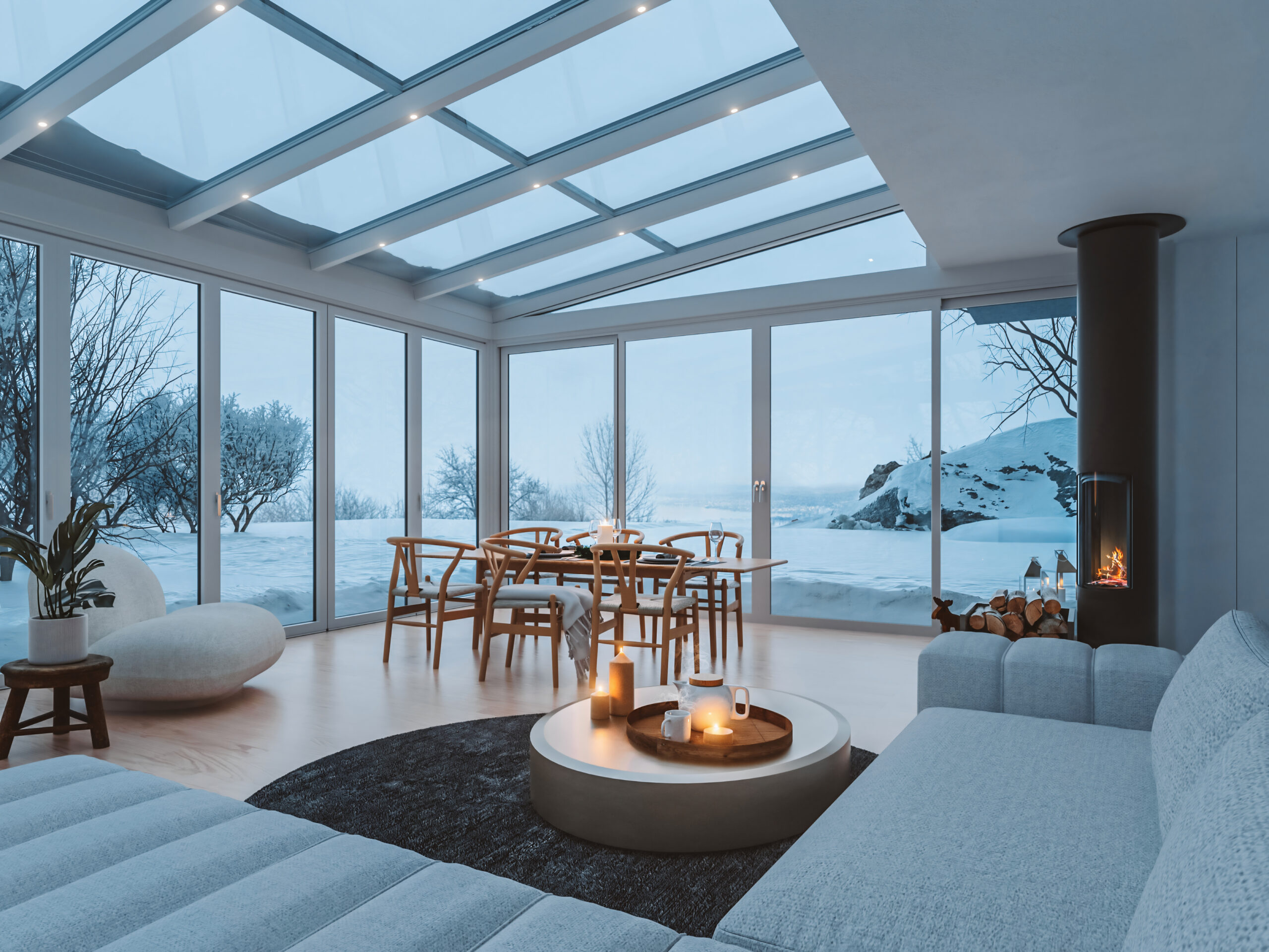 Das Hawaii 80 Wohnwintergarten-System von Sunparadise bietet dank hochisolierender Thermoprofile und Dreifachverglasung hervorragende Wärmedämmwerte. Die schlanken Aluminiumprofile minimieren Wärmebrücken und sorgen für niedrige Heizkosten – selbst bei Minusgraden bleibt es im Wintergarten angenehm warm.